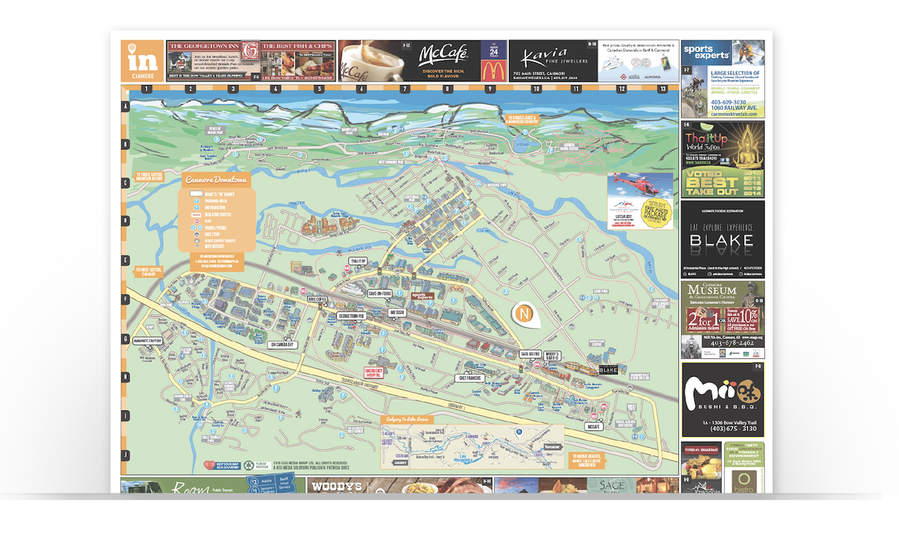 I’m super excited to have our desktop maps back in Banff! We print a Summer/Fall and Winter/Spring version each year. All insertion orders are based on two issues (exceptions apply) which means that you have the opportunity to change up your ad for each issue.