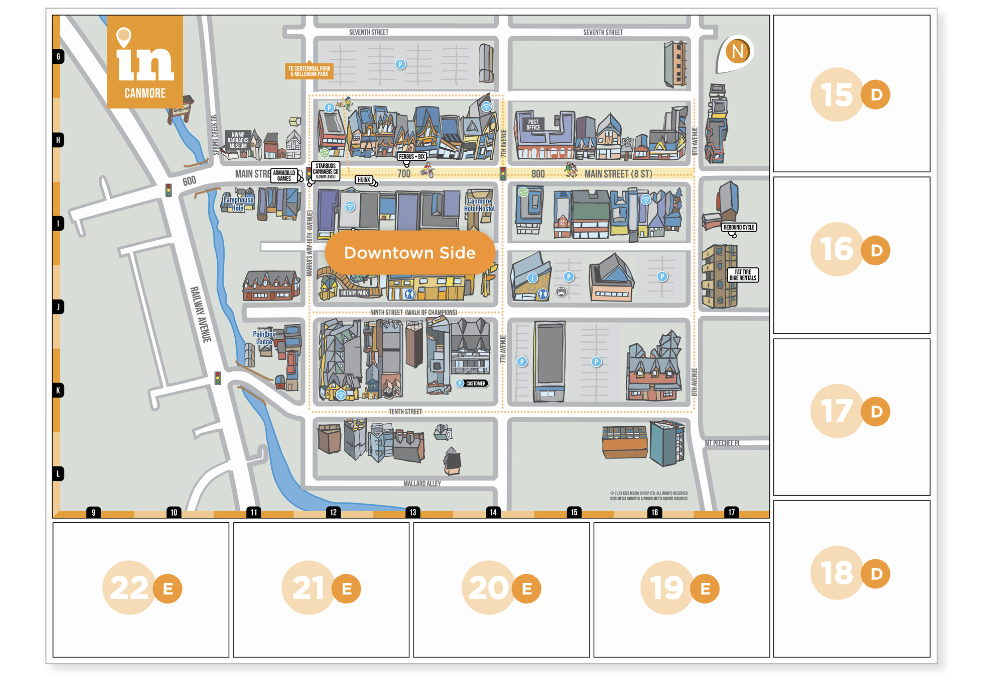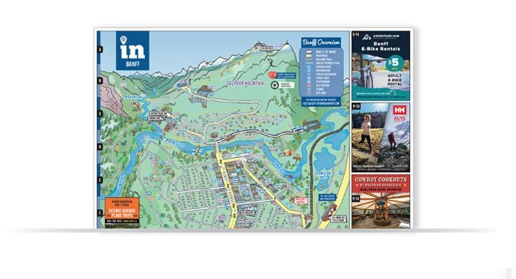 Ad spots are priced affordably from $925 - $1150 per issue and include a bubble call out on the map at your location. Need just a bubble? No worries, we can mark your spot for $525 per issue. Our IN Canmore Visitor Map Guide comes out twice a year: November and May.